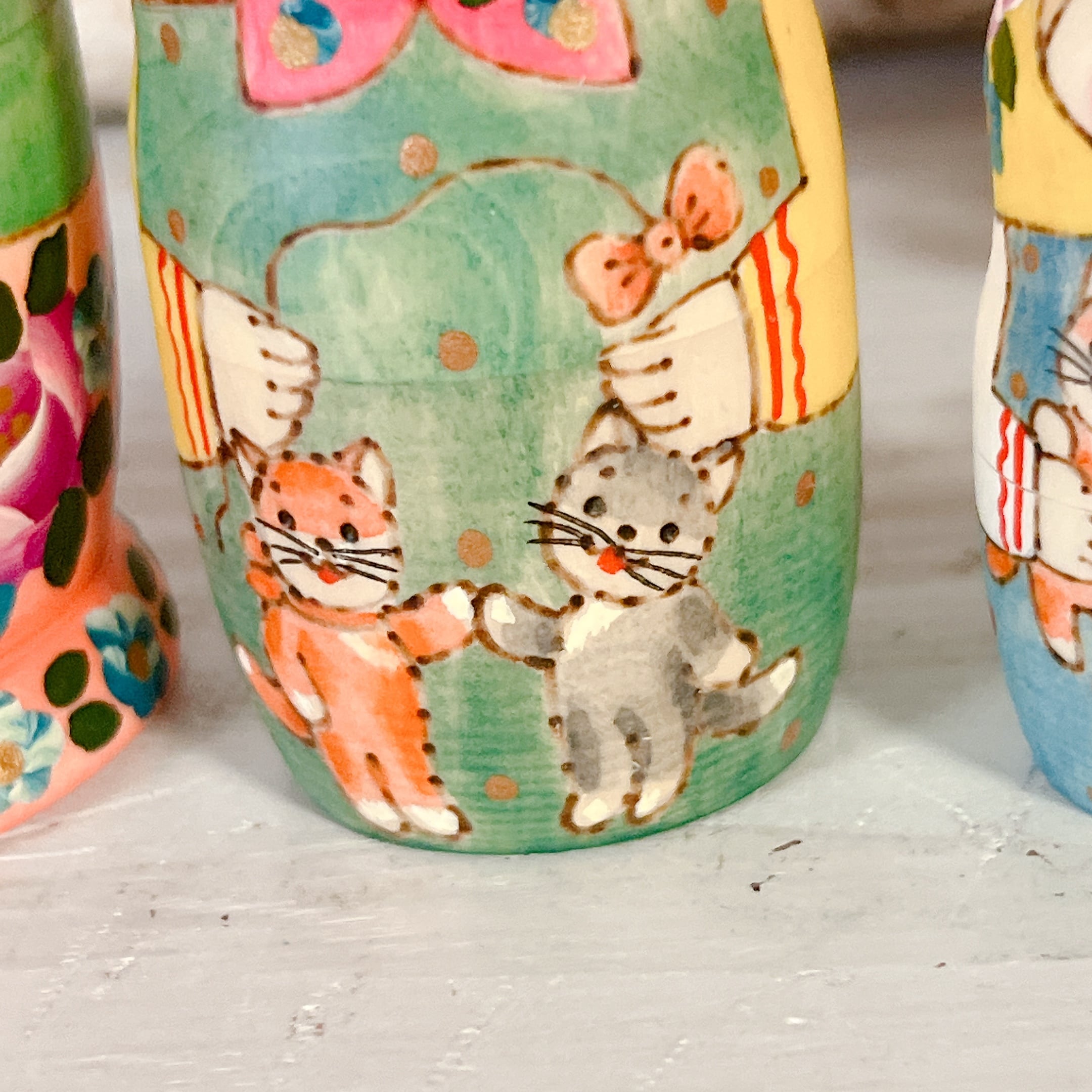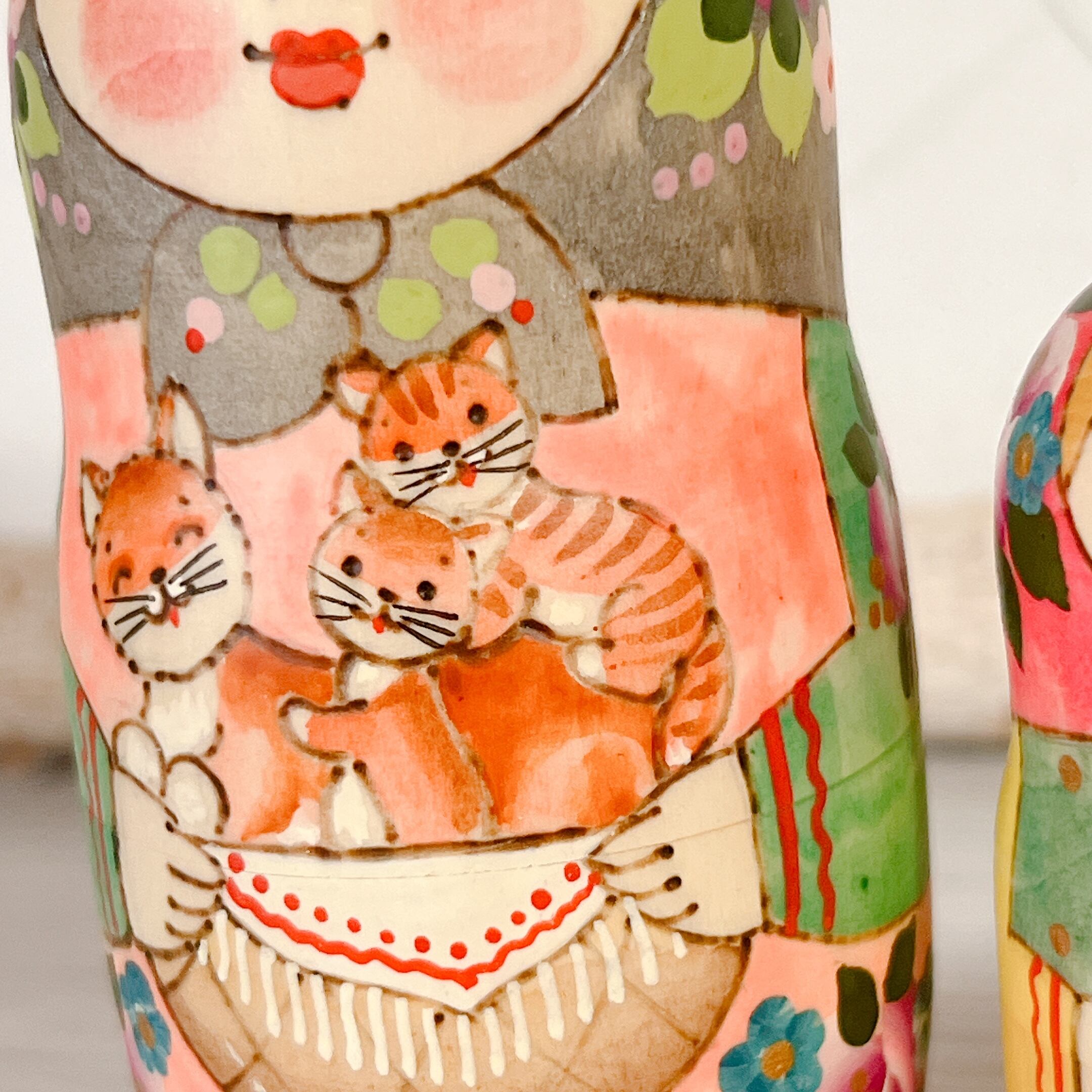 5P リューバ作 マトリョーシカ 「3匹の茶ネコちゃん」 11.5cm MTRy003