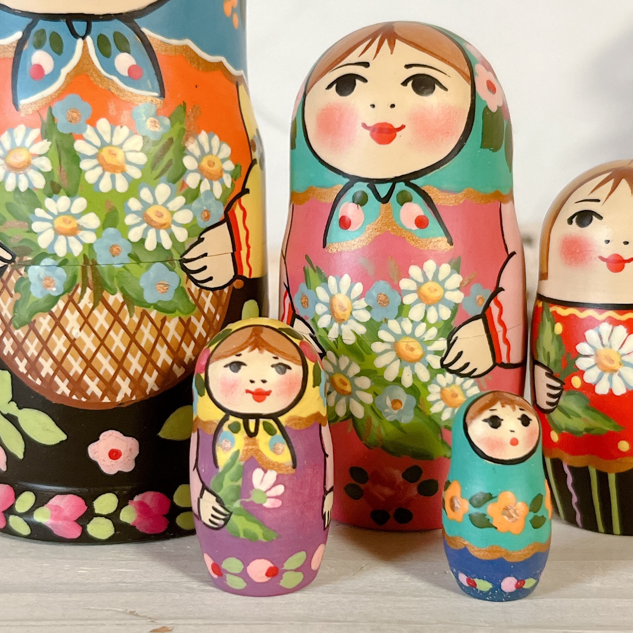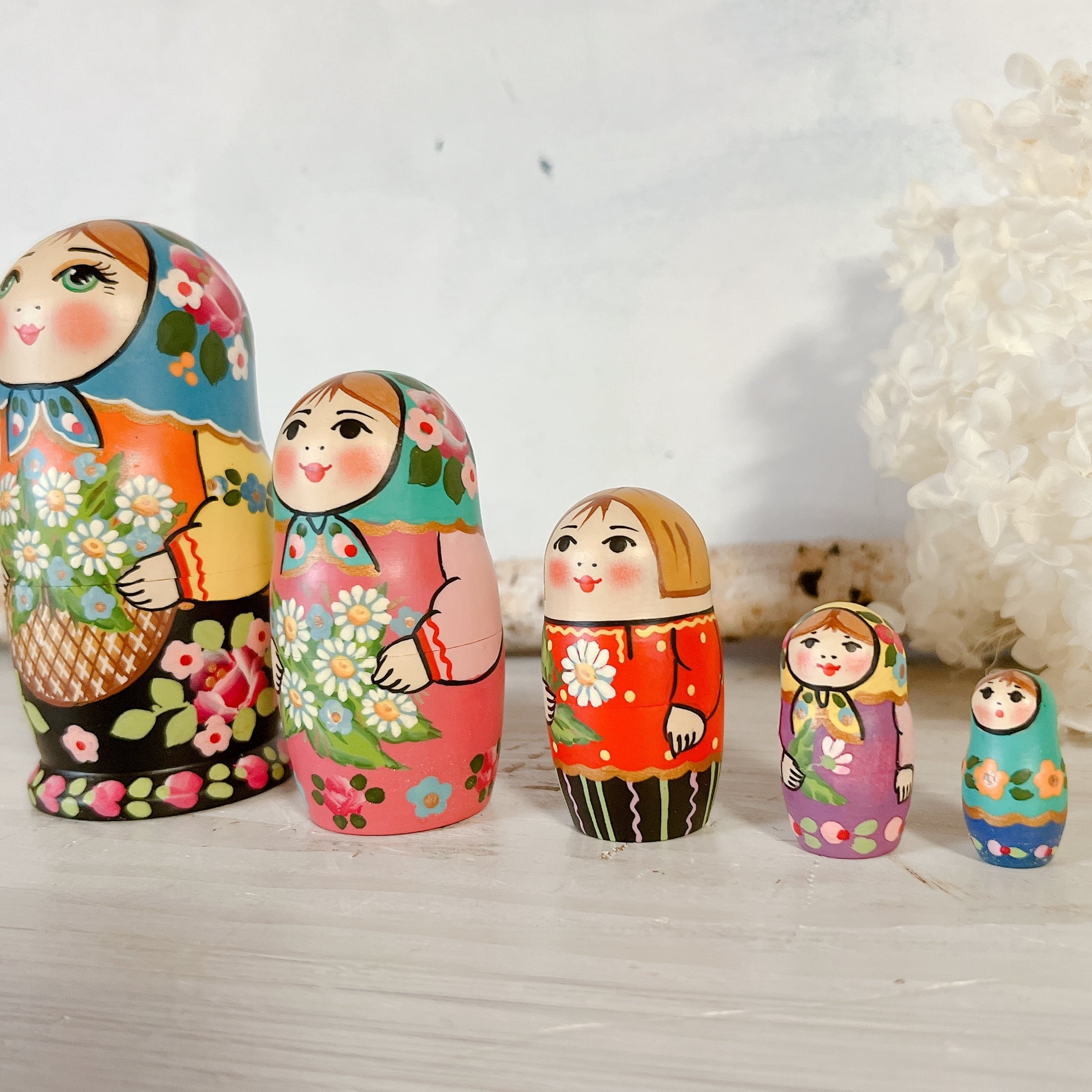 5P イバンツァ一作 マトリョーシカ 「白いお花」 11.5cm MT Iv001