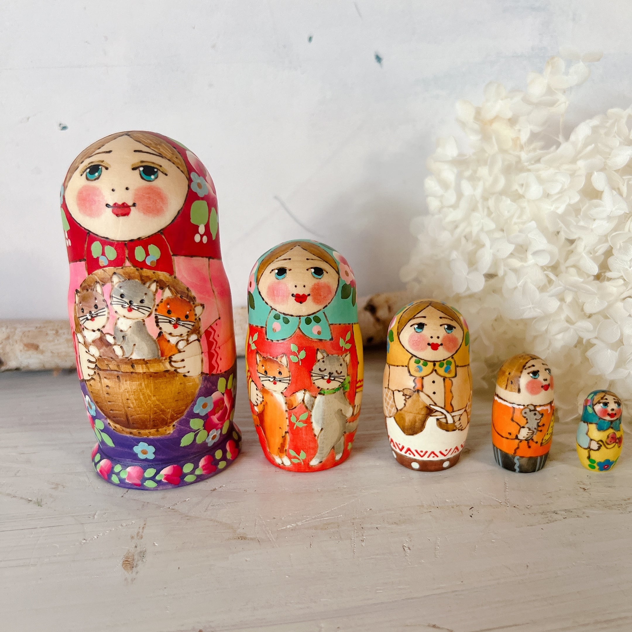 5P リューバ作 マトリョーシカ 「3匹の色々ネコちゃん」 11.5cm MTRy007